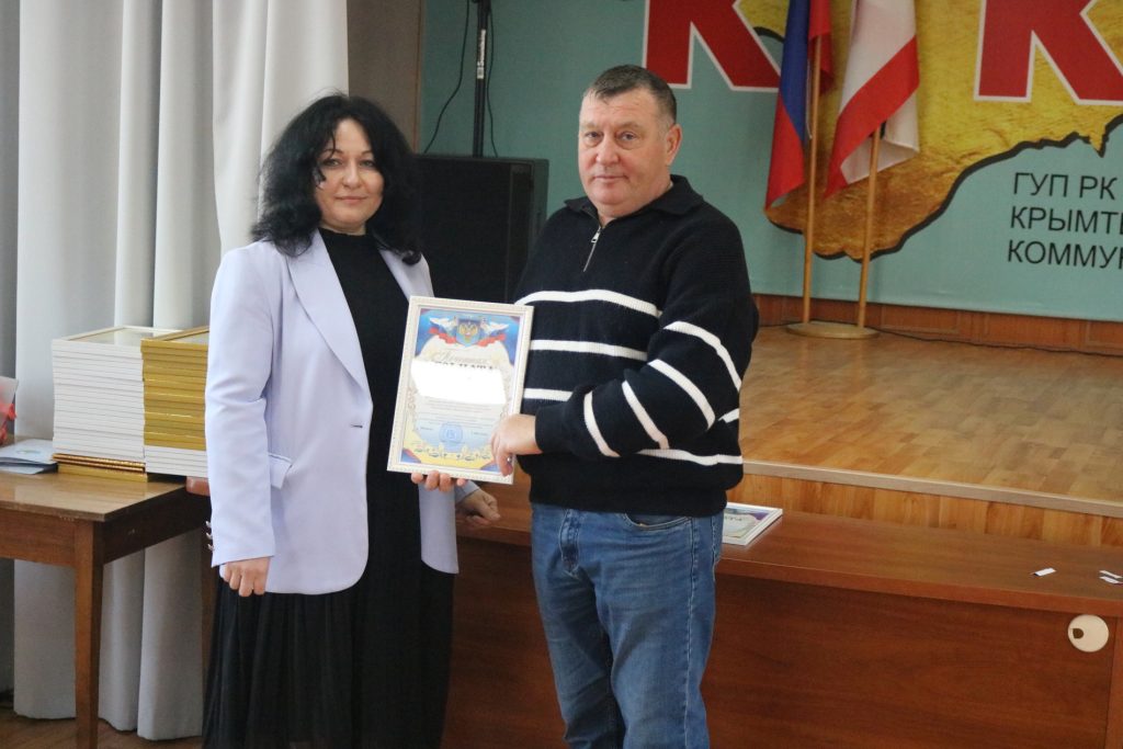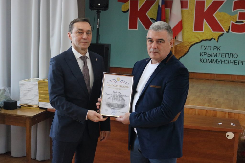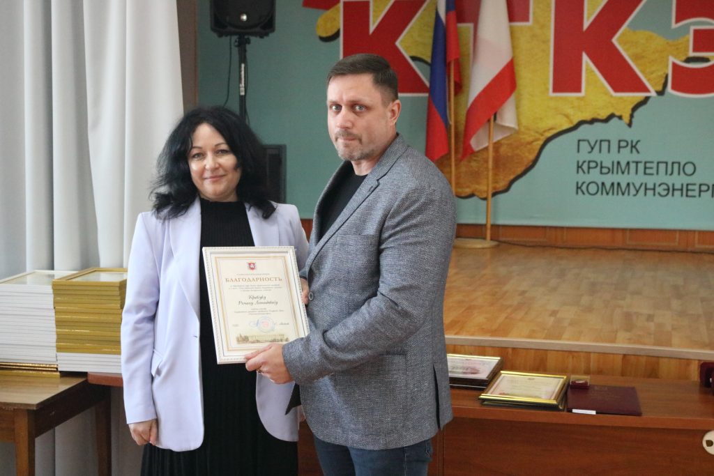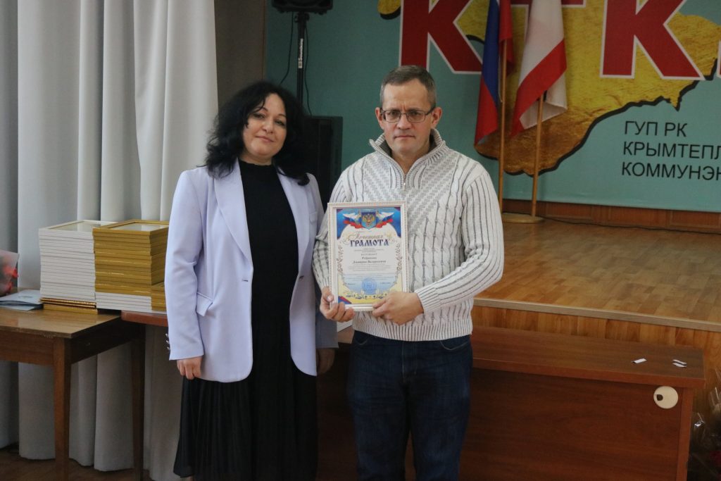 13 марта в преддверии Дня работников бытового обслуживания населения и жилищно-коммунального хозяйства в актовом зале ГУП РК «Крымтеплокоммунэнерго» состоялось торжественное мероприятие. Сотрудников предприятия поздравили гости мероприятия: депутат Государственного совета РК Тихомиров Алексей Николаевич, первый заместитель министра жилищно-коммунального хозяйства Республики Крым Механичева Оксана Ивановна, заместитель председателя КРООП работников жизнеобеспечения Никонова Людмила Дмитриевна. Со словами благодарности к коллективу выступил генеральный директор ГУП РК «Крымтеплокоммунэнерго» Прилипко Дмитрий Владимирович. Депутат Государственного совета РК Тихомиров Алексей Николаевич и первый заместитель министра жилищно-коммунального хозяйства Республики Крым Механичева Оксана Ивановна наградили отличительным знаком «Часы от Главы Республики Крым» генерального директора ГУП РК «Крымтеплокоммунэнерго» Прилипко Дмитрия Владимировича и лучших сотрудников предприятия . Передовики КТКЭ были отмечены Благодарностью Главы Республики Крым, нагрудным знаком Совета министров и Президиума Государственного Совета Республики Крым с вручением Почетной грамоты, Благодарственным письмом Главы Администрации города, Почетной грамотой и Благодарностью министра жилищно-коммунального хозяйства Республики Крым, грамотами ГУП РК «Крымтеплокоммунэнерго», Почетной грамотой и Благодарностью профсоюза. От всей души поздравляем коллег с высоким признанием за их профессионализм и многолетний добросовестный труд, труд на благо жителей Республики Крым. Желаем крепкого здоровья, стабильности, благополучия Вам и Вашим семьям, и успехов в нашей непростой, но нужной людям работе.