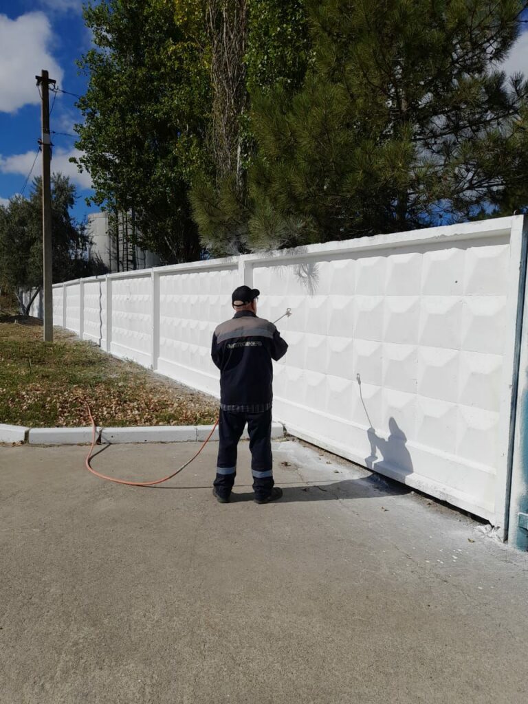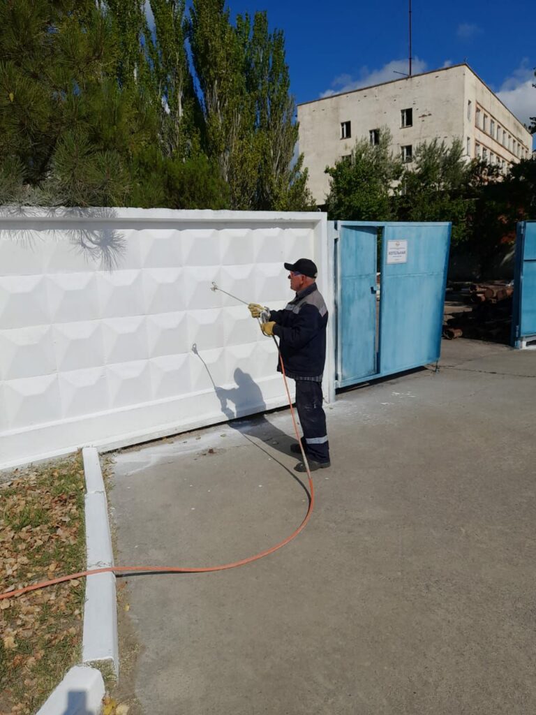 Продолжается подготовка к отопительному сезону. Сотрудники ГУП РК «Крымтеплокоммунэнерго» производят побелку забора в котельной в пгт Щелкино.