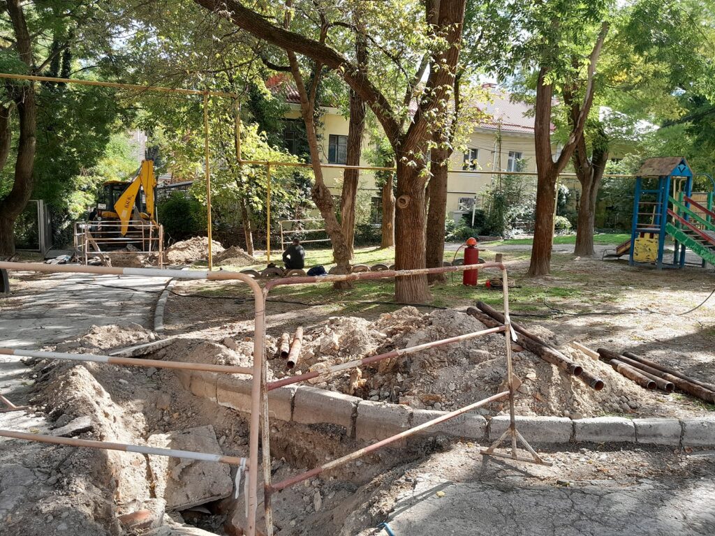 Продолжается подготовка к отопительному сезону. Сотрудники ГУП РК «Крымтеплокоммунэенрго» ремонтируют теплотрассу ДУ 75 мм на ул.Желябова,37/3 в г.Симферополь. Металлические трубы меняют на пластиковые.