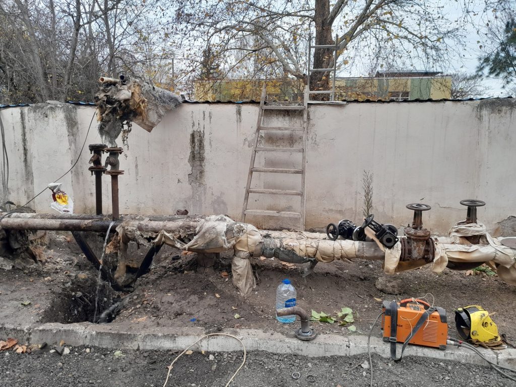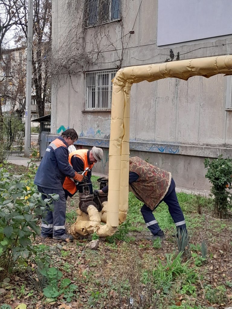 Сотрудники ГУП РК «Крымтеплокоммунэнерго» ремонтируют теплотрассу ДУ 57 мм на ул. Павленко, 9 в г. Симферополь.