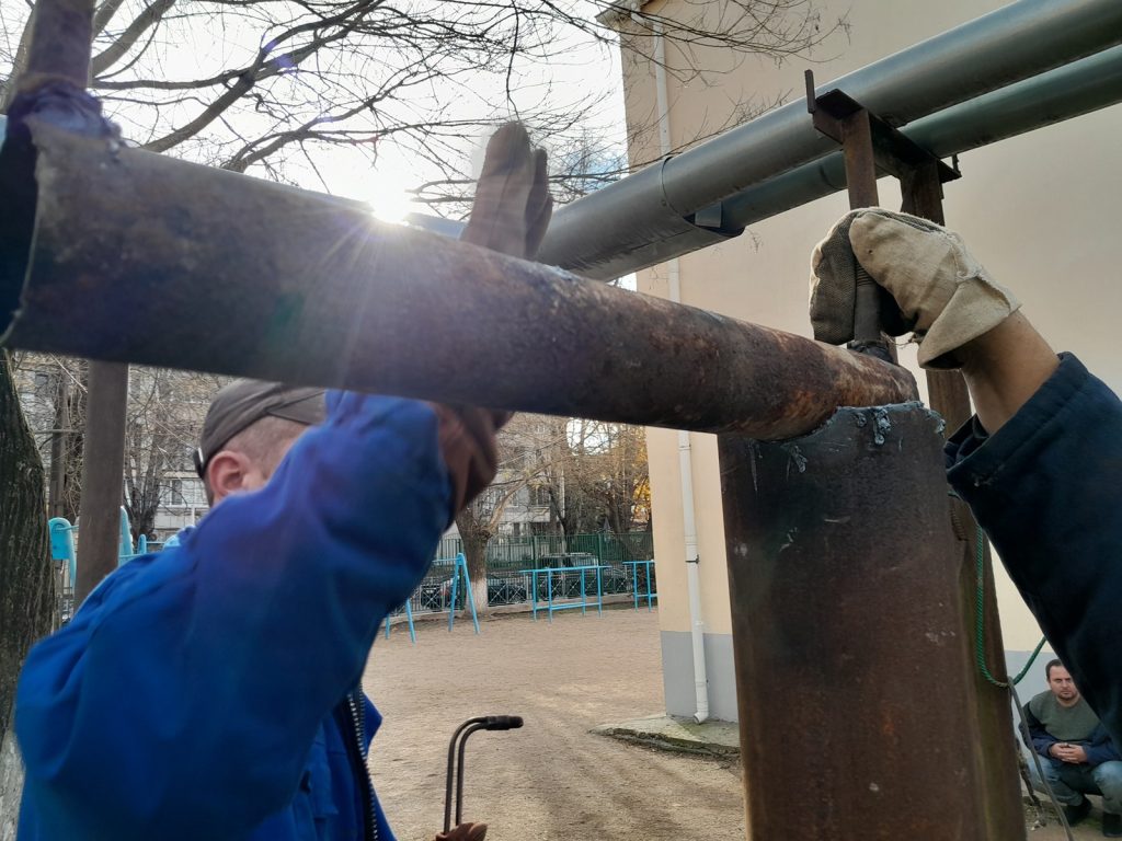 Сотрудники ГУП РК «Крымтеплокоммунэнерго» ремонтируют теплотрассу на ул. Аксакова, 10 в г. Симферополь.